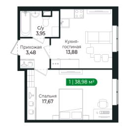 Напрямую продаётся 1 комнатная квартира 312 на 1 этаже (из 4) общей площадью 38,98 м2 в III очереди в жилом комплексе Сертолово Парк от застройщика ГК Алгоритм.