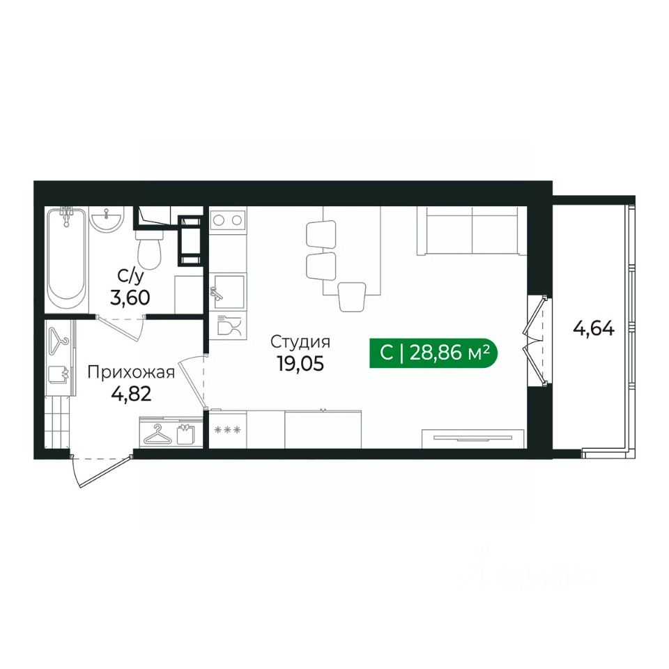 Напрямую продаётся квартира -студия 325 на 3 этаже (из 4) общей площадью 28,86 м2 в III очереди в жилом комплексе Сертолово Парк от застройщика ГК Алгоритм.