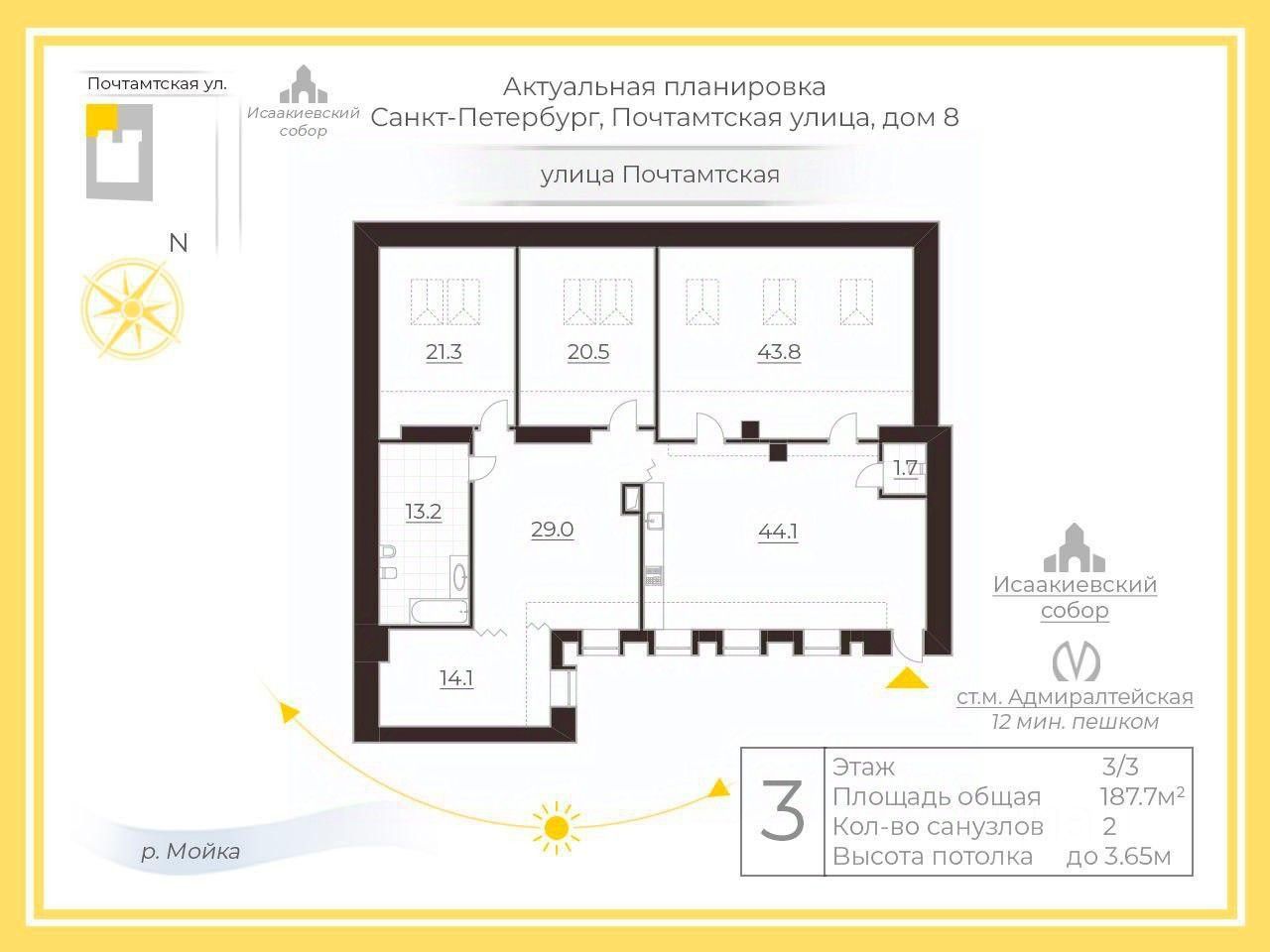 Продается уникальная мансардная квартира 187 метров в самом сердце Санкт-Петербурга на Почтамтской улице, 8.