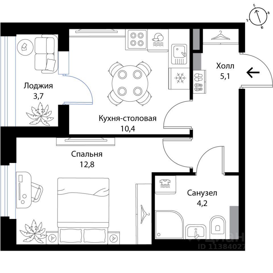 Площадь кухни10,4 м²