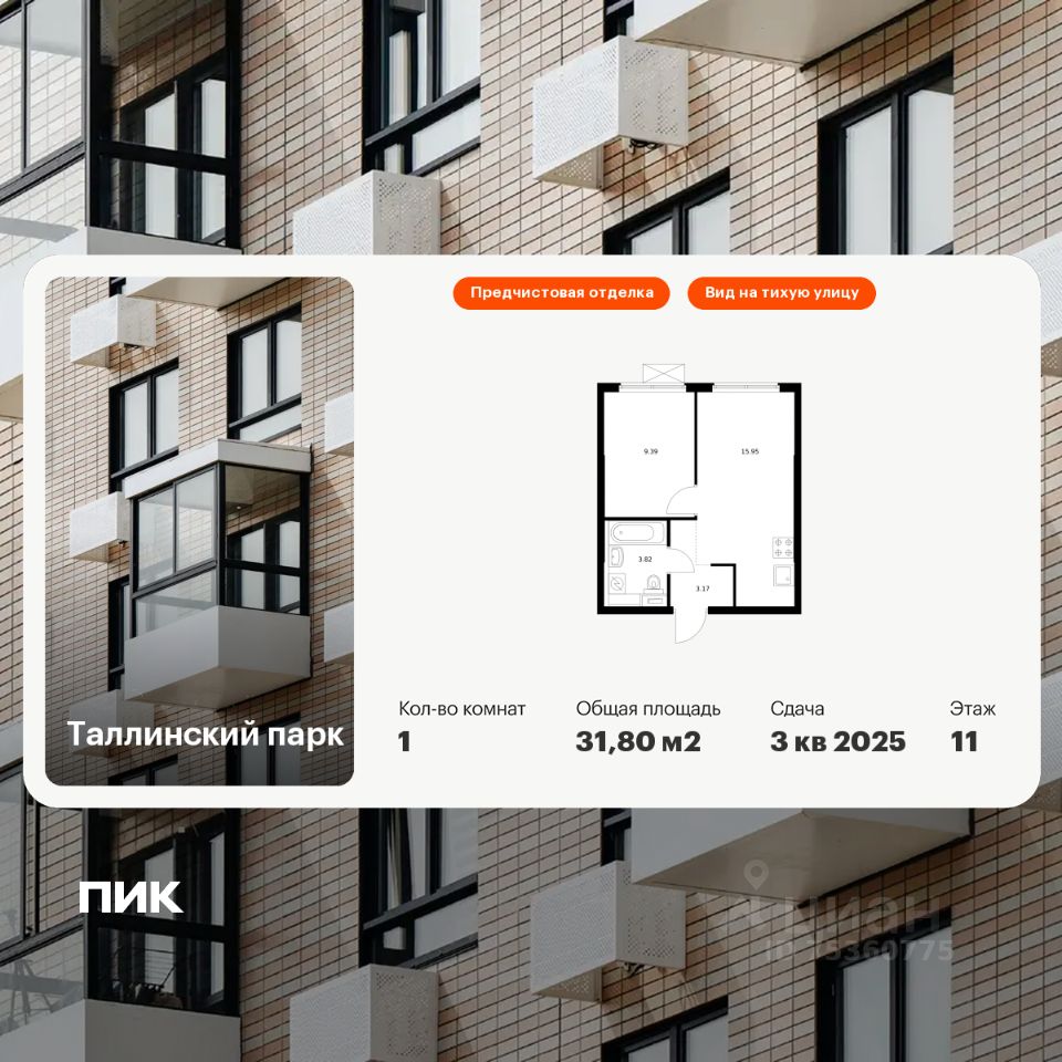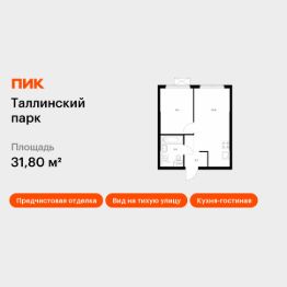 Продаётся 1-комн. квартира площадью 31,8 кв.м на 11 этаже 12 этажного дома (Корпус 3.3, Секция 1) проекта ПИК Таллинский парк. Светлый просторный подъезд на уровне земли, функциональная планировка, большие окна, предчистовая отделка.