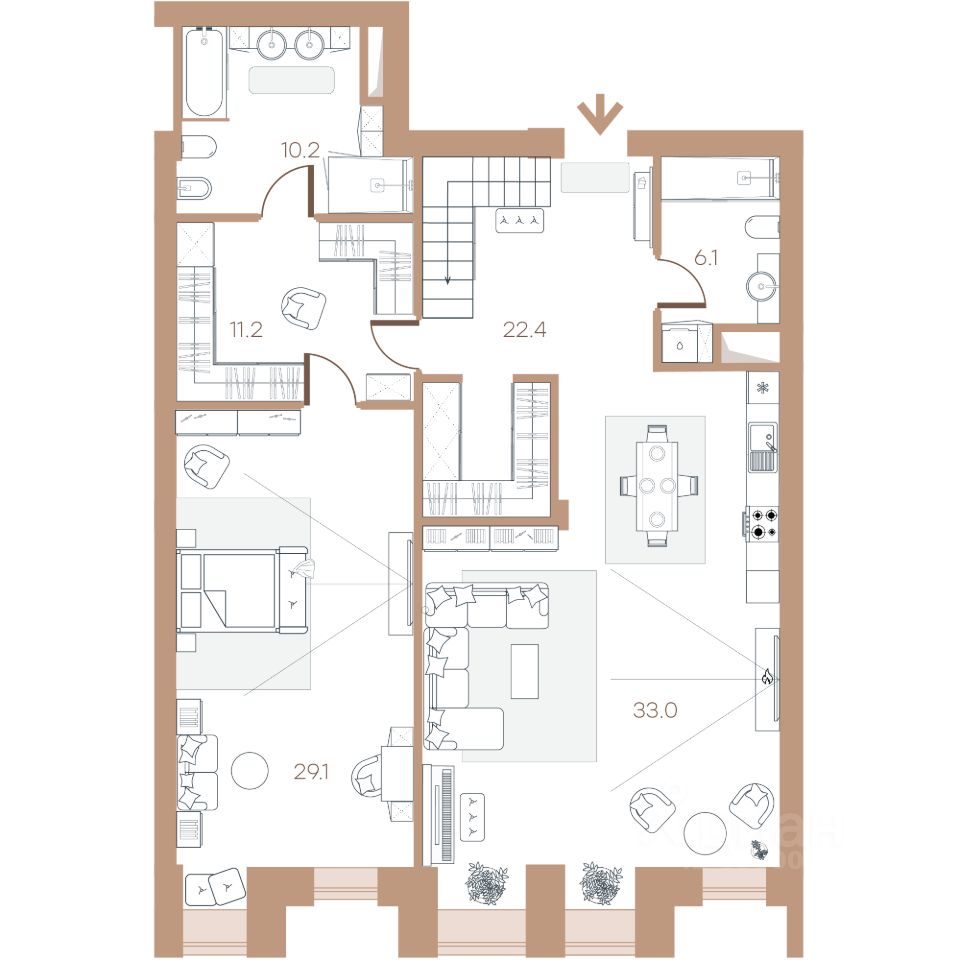 Большинство квартир - двухуровневые со вторым светом и потолками до 4,5 м, что добавляет воздушности и ощущение пространства, превращая каждую комнату в сцену для ваших идей.
