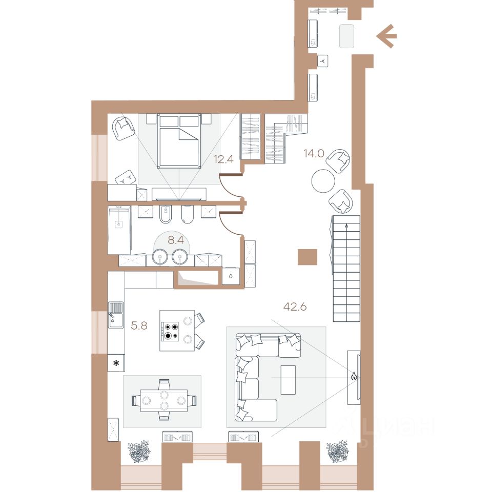 Большинство квартир - двухуровневые со вторым светом и потолками до 4,5 м, что добавляет воздушности и ощущение пространства, превращая каждую комнату в сцену для ваших идей.