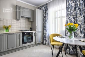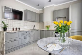 В квартире произведен капитальный ремонт. Две изолированные спальни и просторная кухня-гостиная. Много мест для хранения, отдельная кладовая.
