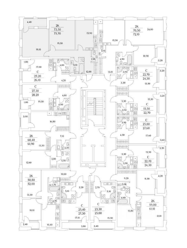 Квартира находится в 13 этажном доме, в Корпус К9 - Тайм Сквер на 4 этаже. Общая площадь квартиры 75,60 кв.м.
