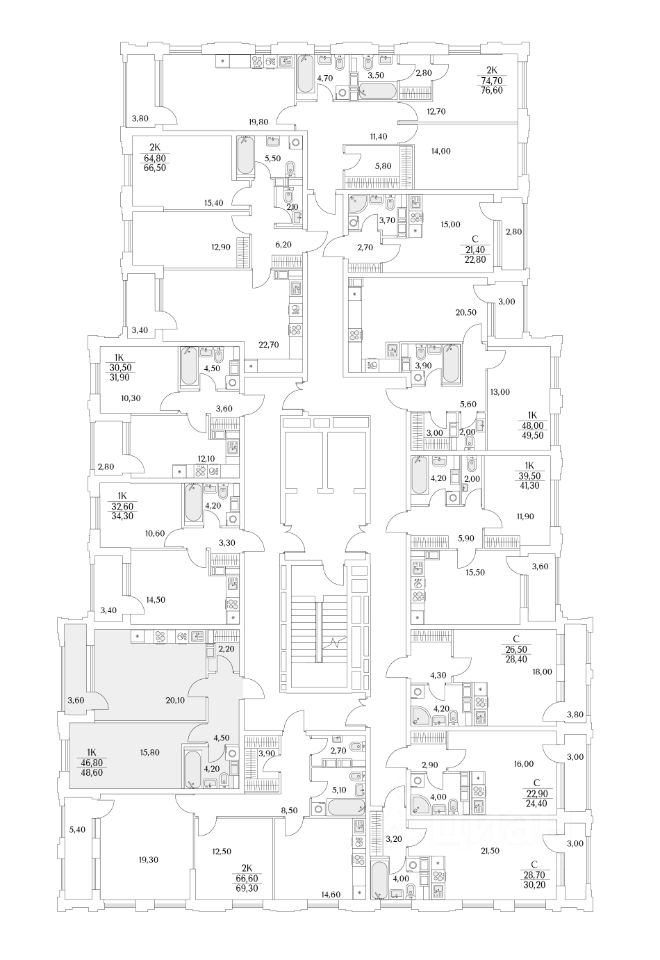 Квартира находится в 13 этажном доме, в Корпус К10 - Тайм Сквер на 4 этаже. Общая площадь квартиры 48,40 кв.м.