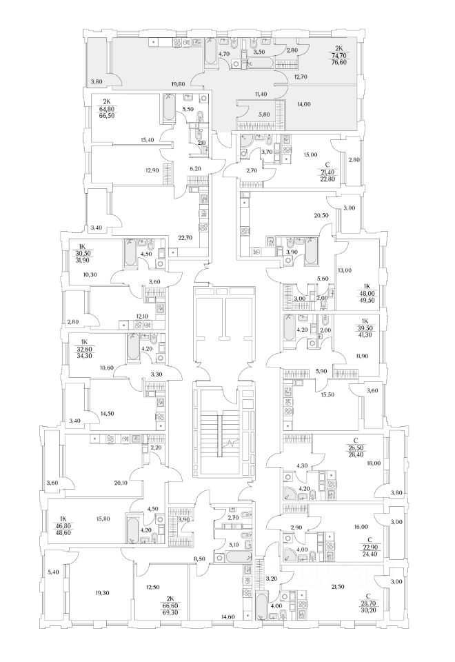 Квартира находится в 13 этажном доме, в Корпус К10 - Тайм Сквер на 10 этаже. Общая площадь квартиры 76,90 кв.м.