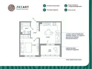 Продаётся 1-комнатная квартира 103, общей площадью 38.11 кв.м., на 2. Дом комфорт-класса, 12 этажей, в окружении леса и малоэтажной застройки. Проект с умным домом. Передача квартир в апреле 2026г.