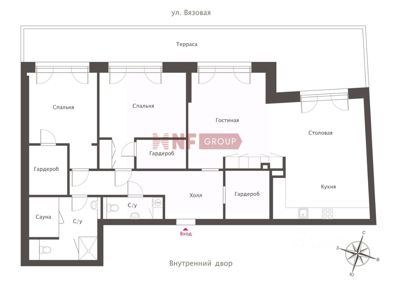 Пространство продумано для комфортной жизни: 2 отдельные спальни с гардеробными, просторная кухня с выходом на террасу, объединенная с гостиной.