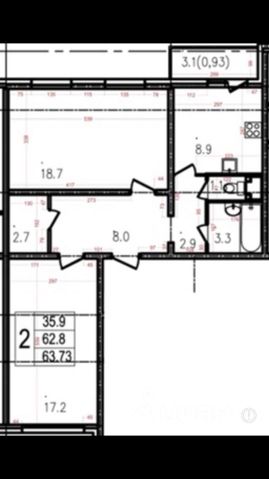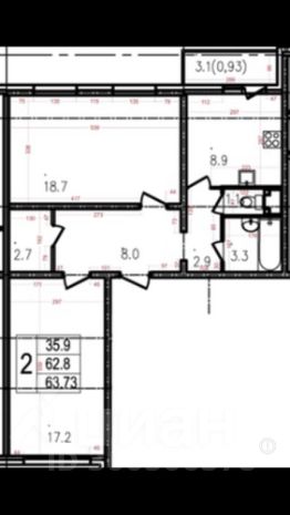 Лучшее предложение по площади среди двухкомнатных квартир в районе. Обе комнаты большие (18,7 и 17,2) Окна на разные стороны.