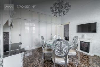 Ремонт в квартире выполнен в стиле Ар-Деко с использованием высококлассных строительных материалов. Для меблировки жилых комнат использованы коллекции ведущих Европейских производителей. Кухня производства Италия, мебель для ванных комнат из Германии, сантехника из Франции.