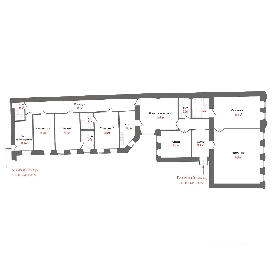Квартира имеет два входа главный с Захарьевской улицы, и дополнительный - с доступом к инфраструктуре дома и во двор.