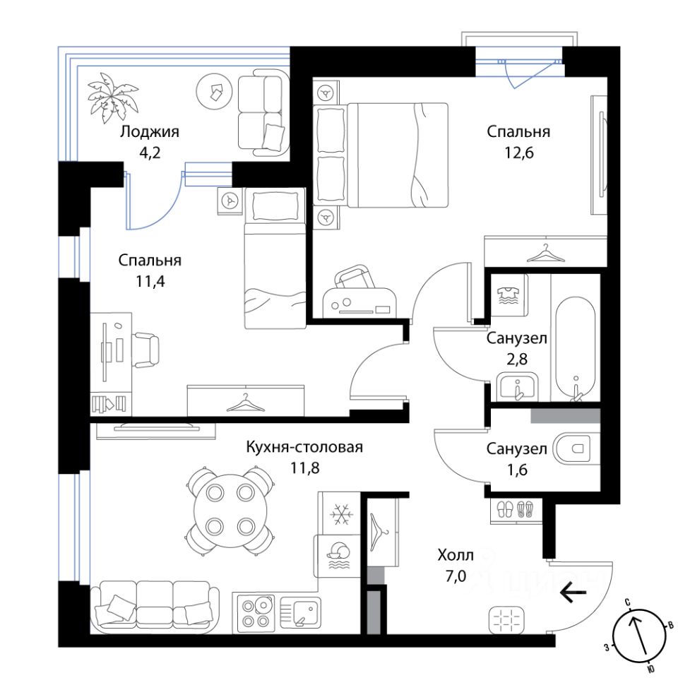 Продаётся 2-комнатная квартира в строящемся доме (Дом 6), срок сдачи: II-кв. 2026, общей площадью 49.3 кв.м., на 2 этаже. Новый жилой комплекс "Экография" от застройщика "ОХТА Групп - Петергоф" расположен по адресу Ленинградская область, Ломоносовский район, Низинское сельское поселение, деревня Ольгино.