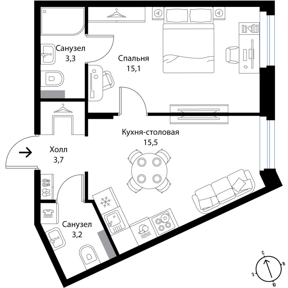15,1 м²