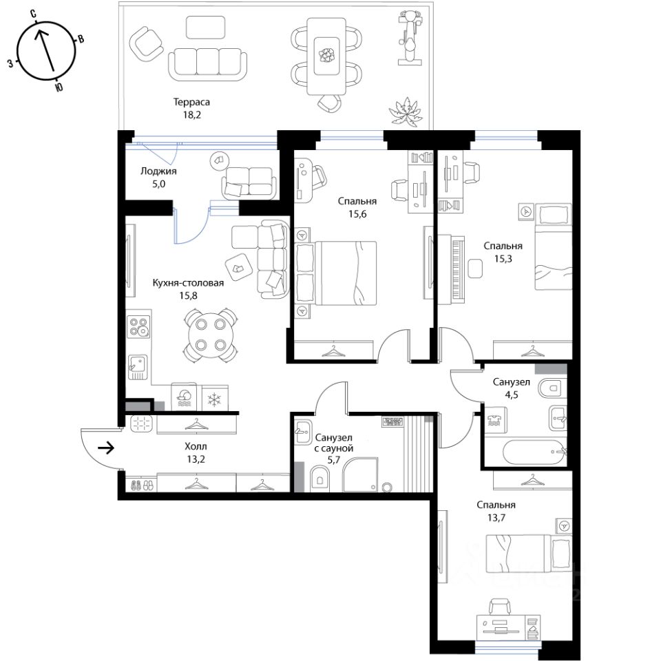 Продаётся 3-комнатная квартира в строящемся доме (Дом 1), срок сдачи: II-кв. 2026, общей площадью 91.7 кв.м., на 1 этаже. Новый жилой комплекс "Экография" от застройщика "ОХТА Групп - Петергоф" расположен по адресу Ленинградская область, Ломоносовский район, Низинское сельское поселение, деревня Ольгино.