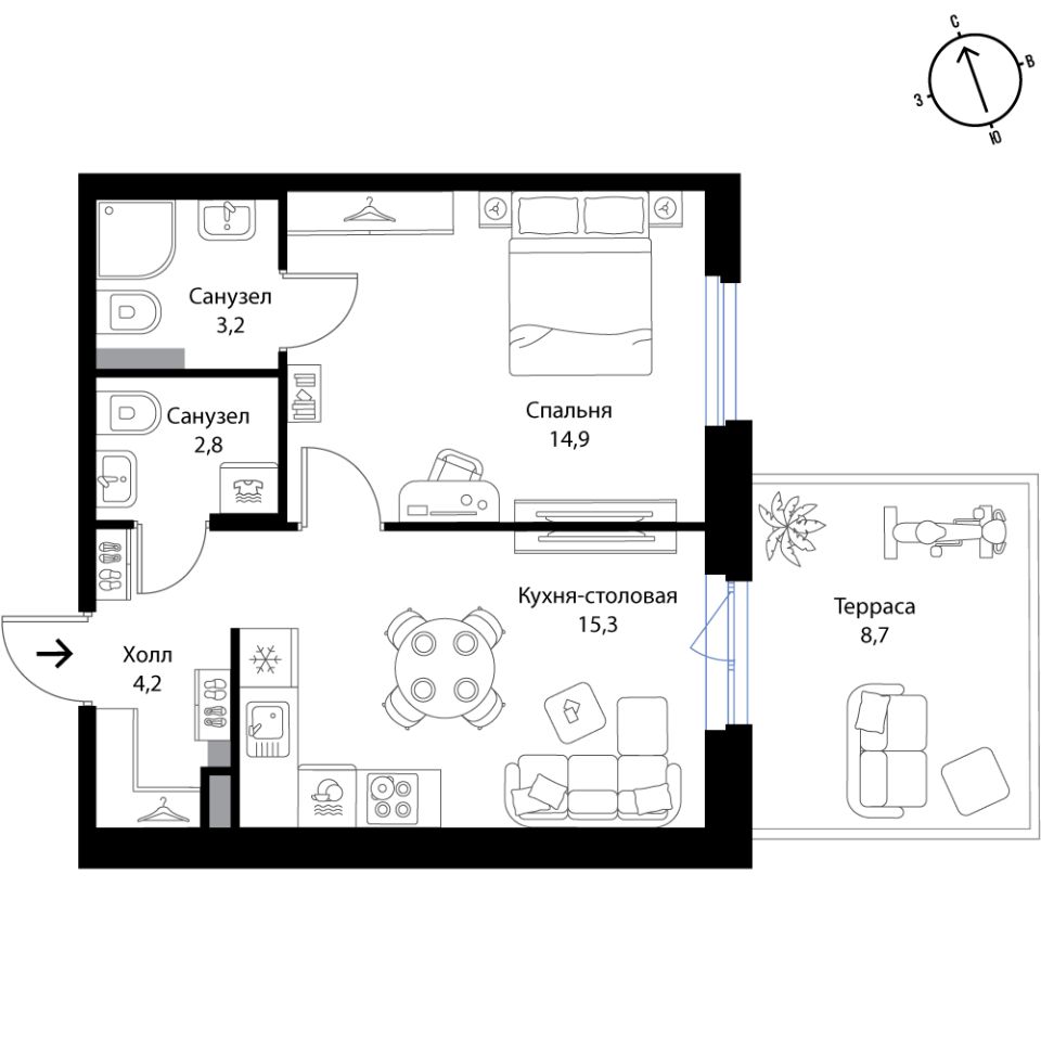 Продаётся 1-комнатная квартира в строящемся доме (Дом 1), срок сдачи: II-кв. 2026, общей площадью 43 кв.м., на 1 этаже. Новый жилой комплекс "Экография" от застройщика "ОХТА Групп - Петергоф" расположен по адресу Ленинградская область, Ломоносовский район, Низинское сельское поселение, деревня Ольгино.