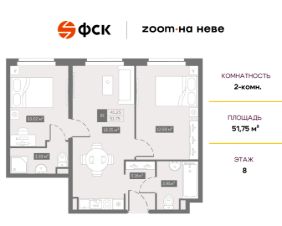 Цена со скидкой до 30% в прямой продаже от застройщика — только в этом месяце. При покупке апартаментов - паркинг за полцены. На все апартаменты действует беспроцентная рассрочка. Купите на распродаже! Покупка недвижимости в Zoom на Неве сейчас со скидкой до 30% позволит через 2 года получить доход до 6 300 000 руб. Роскошные виды на Неву. 2-к апартамент в комплексе класса бизнес-лайт Zoom на Неве на 8-м этаже. Общая площадь 51,75. Без отделки.