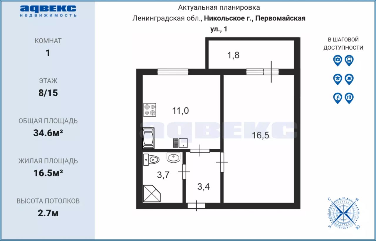 34,6 м²