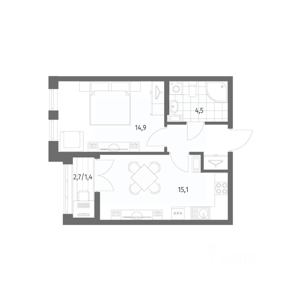 Продается квартира площадью 39.8 м²