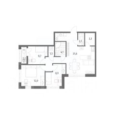 в NEWПИТЕР от компании ГК "ТРЕСТ". Площадь кухни 31.6 м². Жилой квартал расположен в пос. Новоселье. Прописка Ленинградская область.
