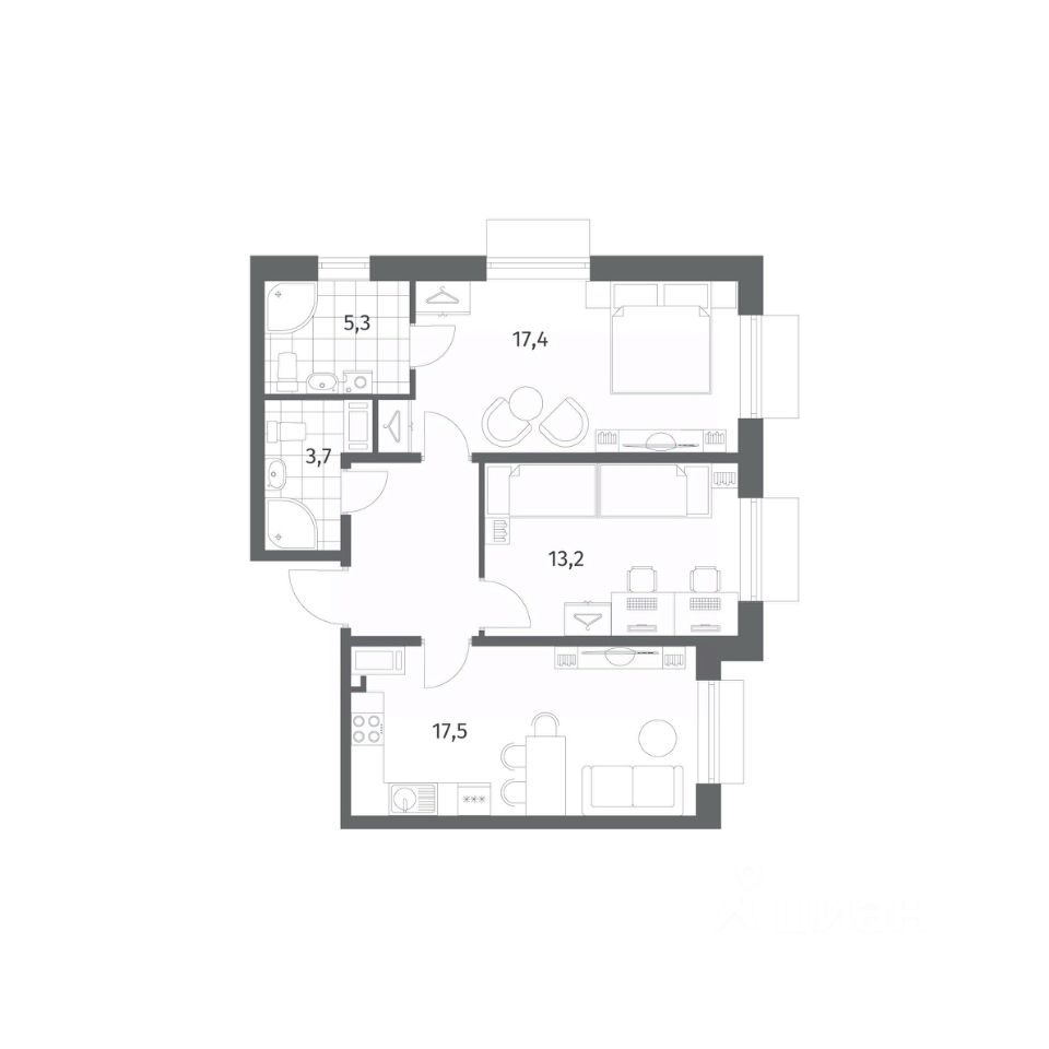 Продается квартира площадью 63.9 м²