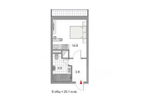 Жилая площадь 14.8 кв.м, просторный балкон, совмещенный сан.узел 4кв.м.