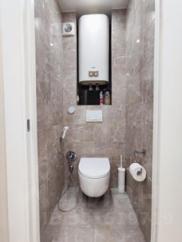 Раздельный санузел оборудован водонагревателем, а также установлен гигиенический душ-биде. Ванная комната имеет приятный мягкое цветовое решение и качественную сантехнику.