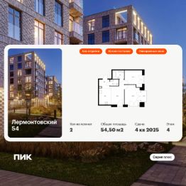 Продаётся 2-комн. квартира площадью 54,5 кв.м на 4 этаже 7 этажного дома (Корпус 2.1, Секция 7) проекта ПИК Лермонтовский 54. Светлый просторный подъезд на уровне земли, функциональная планировка, большие окна, без отделки.