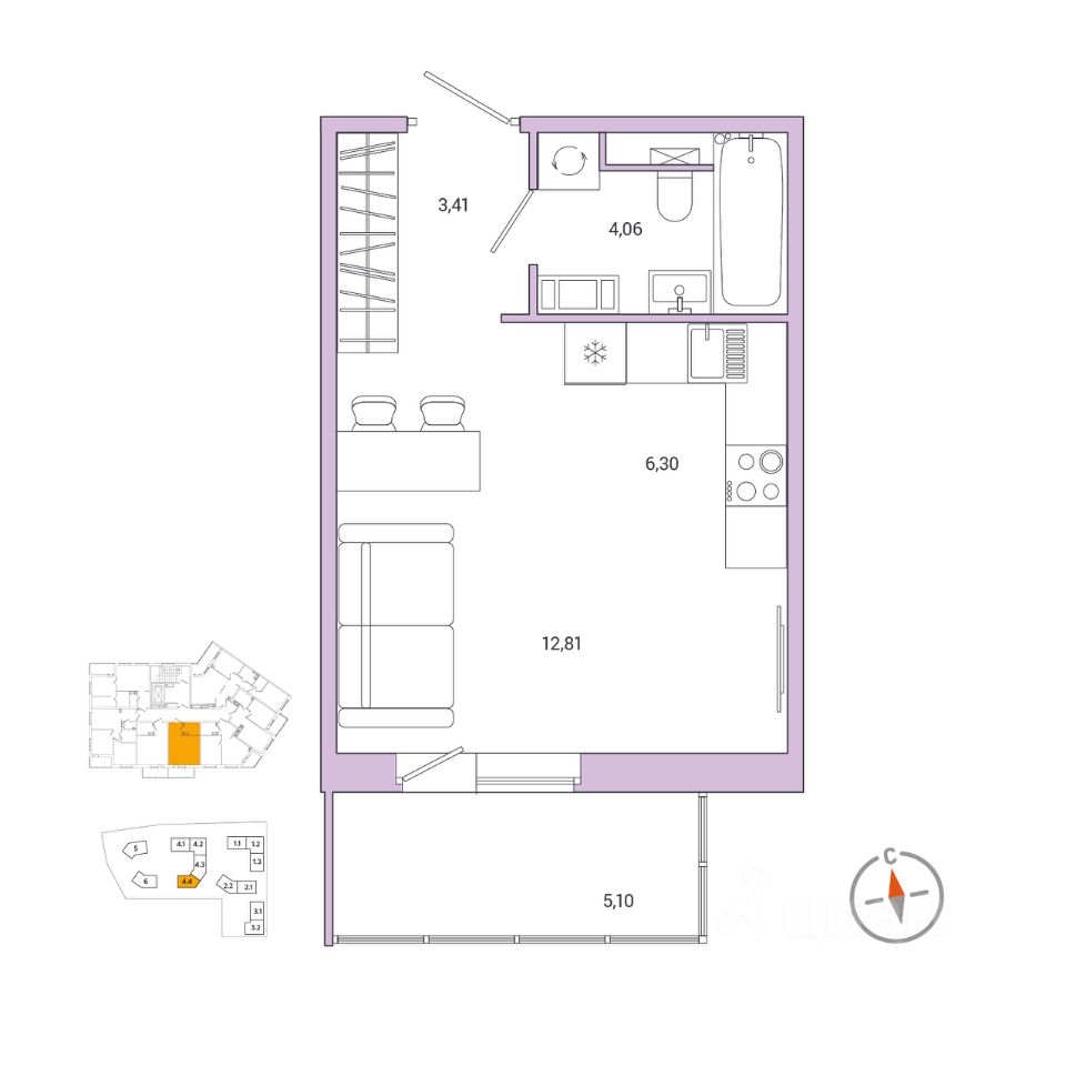 6,3 м²