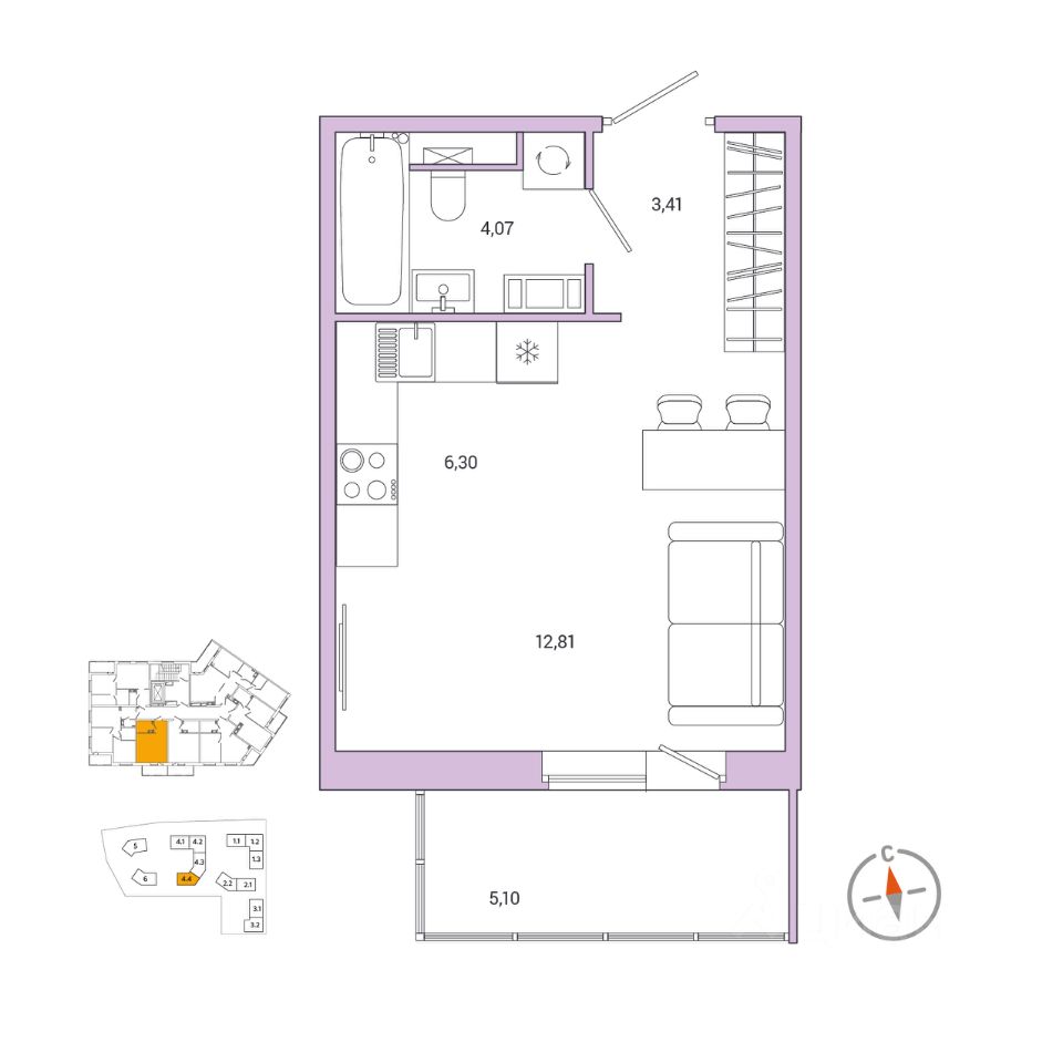 6,3 м²