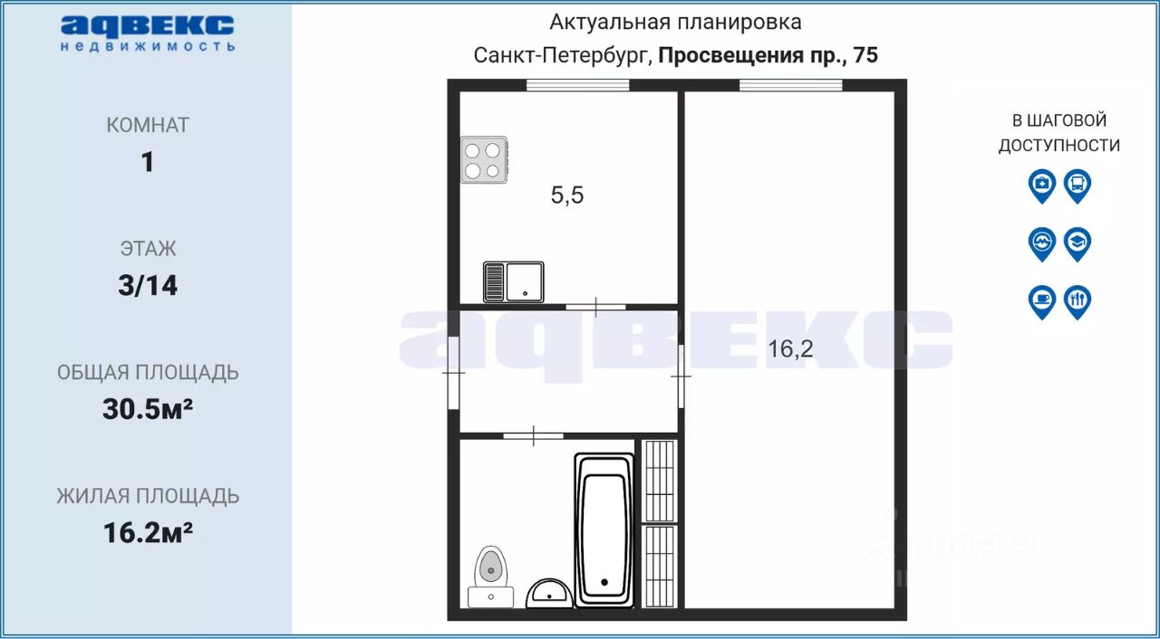 30,5 м²