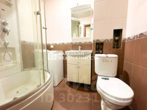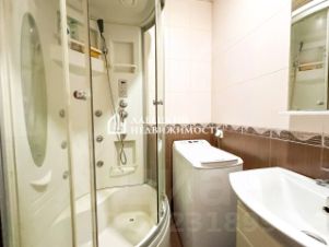 В квартире совмещенный санузел. Оборудована душевая кабина, помещается стиральная машина и раковина.