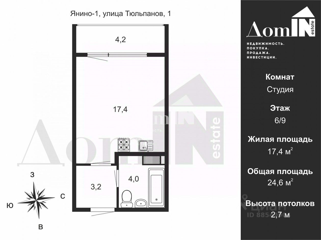 Арт. 66463011 УЮТНАЯ СТУДИЯ В ЖК "ЯНИЛА-ДРАЙВ"