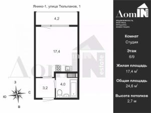 S=24.6 кв.м, Жилая - 17 кв.м.