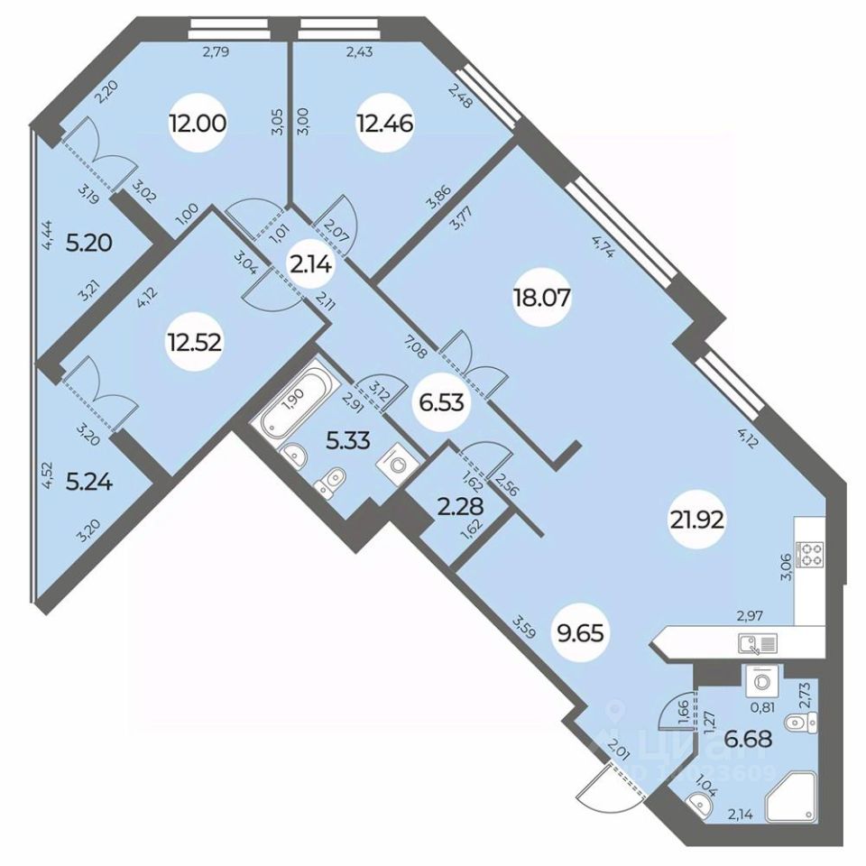 Площадь кухни21,9 м²