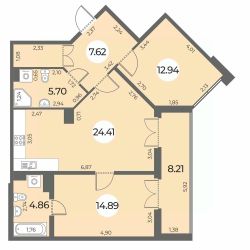 Общая площадь74,53 м²