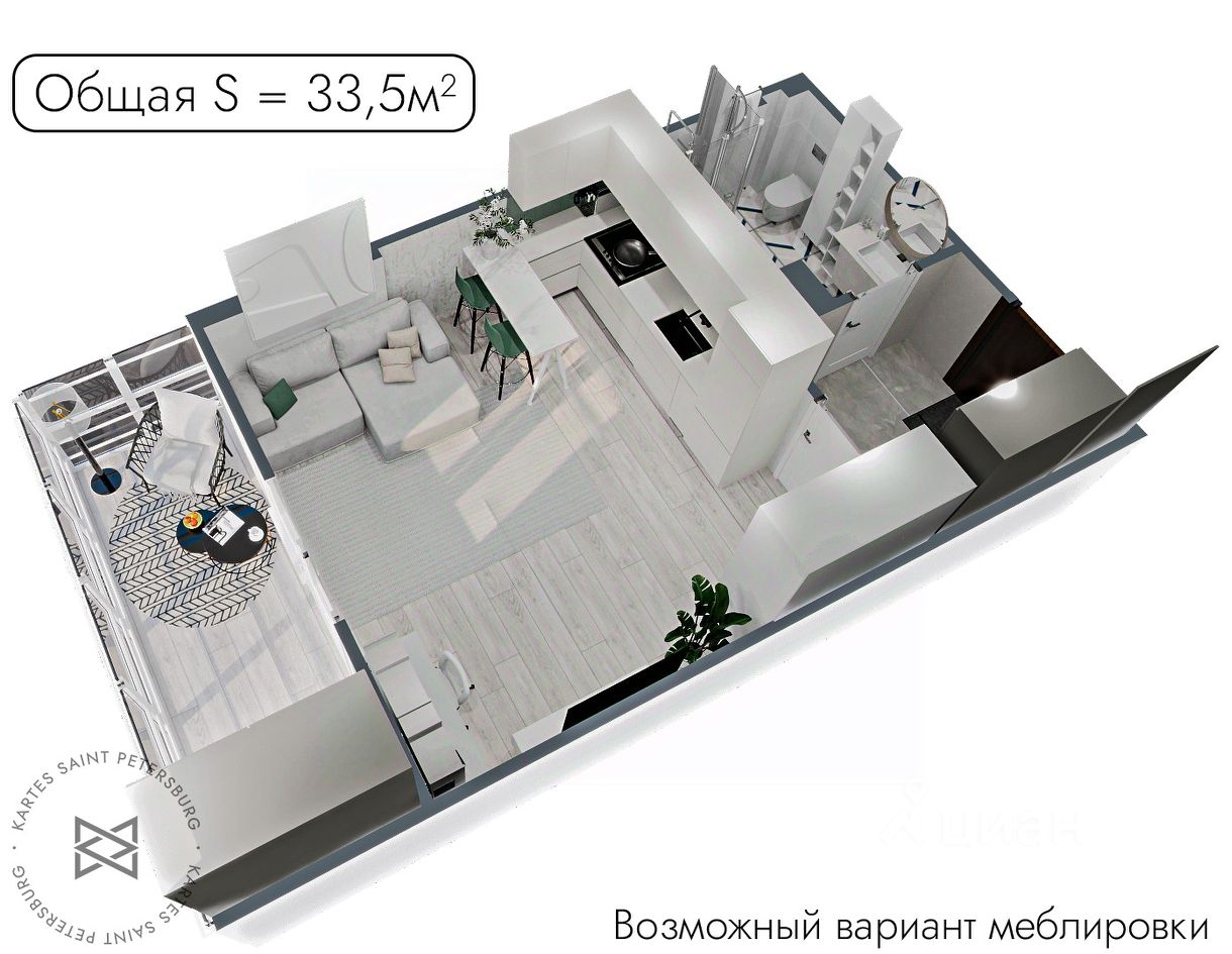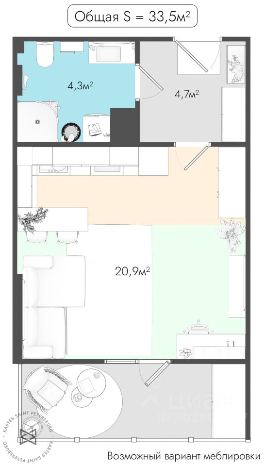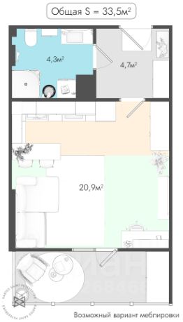 2 Площадь без балкона 30,3 метра. Согласитесь, для студии, это редкость.