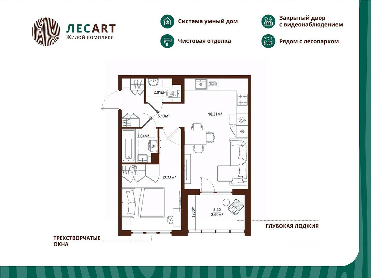 Продаётся 1-комнатная квартира 043, общей площадью 43.37 кв.м., на 8. Дом комфорт-класса, 12 этажей, в окружении леса и малоэтажной застройки. Проект с умным домом. Передача квартир в феврале 2025г.