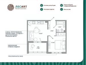 Продаётся 1-комнатная квартира 098, общей площадью 38.11 кв.м., на 1. Дом комфорт-класса, 12 этажей, в окружении леса и малоэтажной застройки. Проект с умным домом. Передача квартир в апреле 2026г.