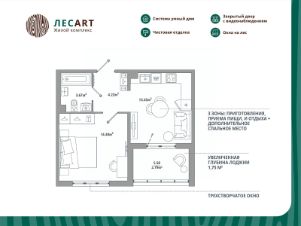 Продаётся 1-комнатная квартира 063, общей площадью 38.61 кв.м., на 4. Дом комфорт-класса, 12 этажей, в окружении леса и малоэтажной застройки. Проект с умным домом. Передача квартир в апреле 2026г.