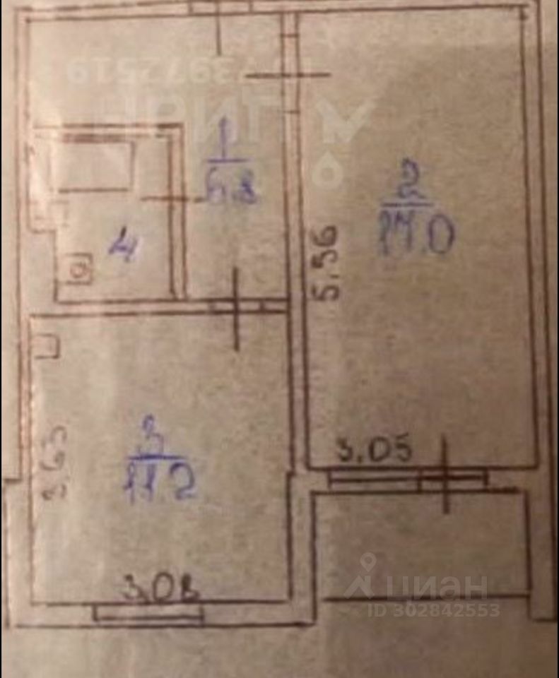 Продается просторная однокомнатная квартира на 2 этаже в 5 этажном доме. Общая площадь квартиры 38,3 кв.м. Кухня 11 кв.м, комната 17 кв.м, коридор 6,8 кв.м.