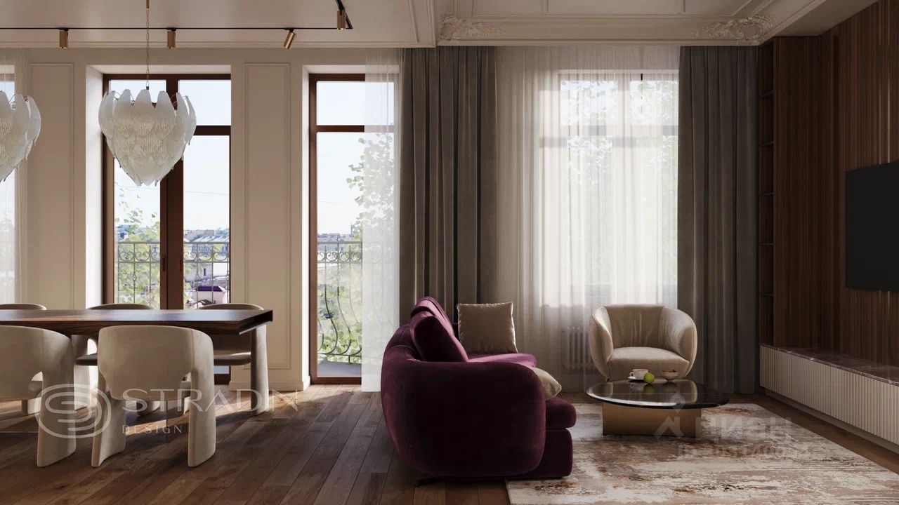 Объект представляет собой пространство с комфортной и продуманной для жизни планировкой , где каждый для себя сможет найти подходящее решение . Просторная кухня-гостиная площадью 39м вместит полноценный гарнитур с островом и зону отдыха, а панорамные окна с балконом позволят наслаждаться видом на Троицкий собор и атмосферные крыши Петербурга .