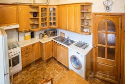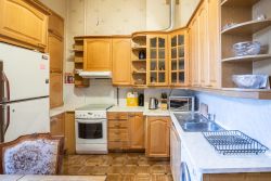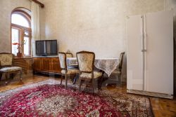 Квартира местами требует ремонта. Установлены деревянные оконные рамы, штучный паркет, лепнина ручной работы на потолке и стенах. Новая кровать, три дивана, кожаное кресло, холодильники. Мебель и техника (кроме плазменного телевизора и стиральной машинки) могут остаться покупателю при необходимости, на стоимость это не повлияет.