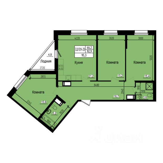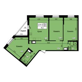 Продается просторная трехкомнатная квартира: общая площадь 95.3 м2, жилая 46.2 м2, высокие потолки 2.73 м. Возможен заказ предчистовой отделки. Планировка грамотно продумана для жизни большой семьи: просторные комнаты, широкий коридор, два санузла, качественная шумоизоляция. В этой квартире всем будет комфортно!В квартире есть обособленное крыло, состоящее из пятиугольной комнаты и санузла. Домочадцам, которые любят приватность, наверняка понравится это оригинальное решение. Две другие комнаты практически одинаковы по размерам.Прямоугольная кухня-гостинная площадью 21.2 м2 это самое просторное и самое светлое (с двумя окнами) помещение в квартире. Здесь комфортно не только готовить, но и устраивать семейные посиделки. Из кухни есть выход на треугольную лоджию, откуда можно обозревать аккуратный двор и парк.
