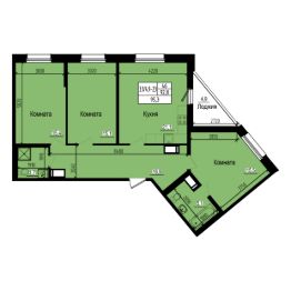 Продается просторная трехкомнатная квартира: общая площадь 95.3 м2, жилая 46 м2, высокие потолки 2.73 м. Возможен заказ чистовой отделки. Планировка грамотно продумана для жизни большой семьи: просторные комнаты, широкий коридор, два санузла, качественная шумоизоляция. В этой квартире всем будет комфортно!В квартире есть обособленное крыло, состоящее из пятиугольной комнаты и санузла. Домочадцам, которые любят приватность, наверняка понравится это оригинальное решение. Две другие комнаты практически одинаковы по размерам.Прямоугольная кухня-гостинная площадью 21.1 м2 это самое просторное и самое светлое (с двумя окнами) помещение в квартире. Здесь комфортно не только готовить, но и устраивать семейные посиделки. Из кухни есть выход на треугольную лоджию, откуда можно обозревать аккуратный двор и парк.