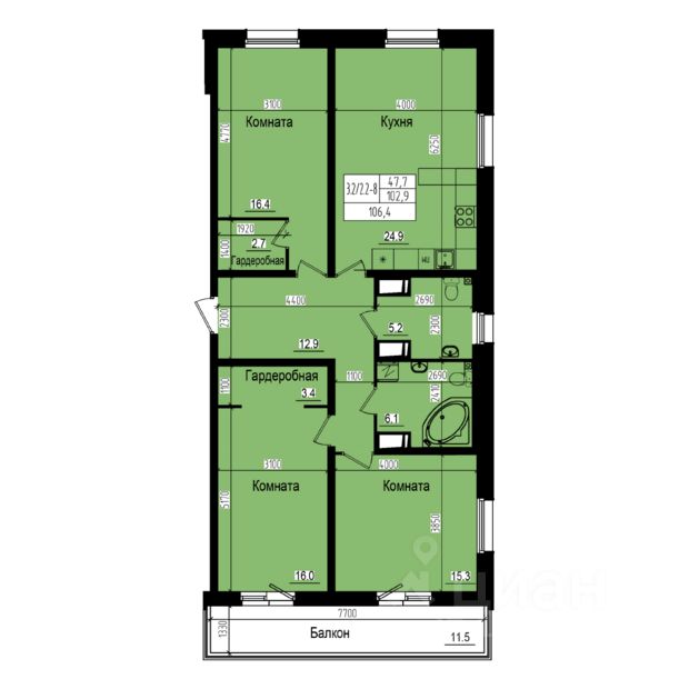 Продается двухсторонняя трехкомнатная квартира, которая отлично подойдет семье с детьми. Общая площадь квартиры 106.4 м2, жилая 47.7 м2. Пространства хватит всем домочадцам, при этом не придется переплачивать за лишние метры. Ощущение свободы добавят высокие потолки (2.73 м) и штульповые двери на лоджию, которые делают жилье особенно просторным и светлым.В квартире имеются три большие прямоугольные комнаты, две почти одинаковые по размеру. Каждую из комнат можно использовать исходя из ее особенностей: одна расположена особняком от остальных помещений, из другой есть выход на лоджию, третья граничит с кухней. В большой кухне (24.9 м2) удобно не только готовить, но и собираться всем членам семьи. Прихожая обеспечивает свободный доступ в квартиру и дает возможность оборудовать нишу или установить шкаф для хранения вещей. Раздельный санузел и ванная комната с окном. Это идеальное жилье для семьи, где каждый будет иметь свой уютный уголок.