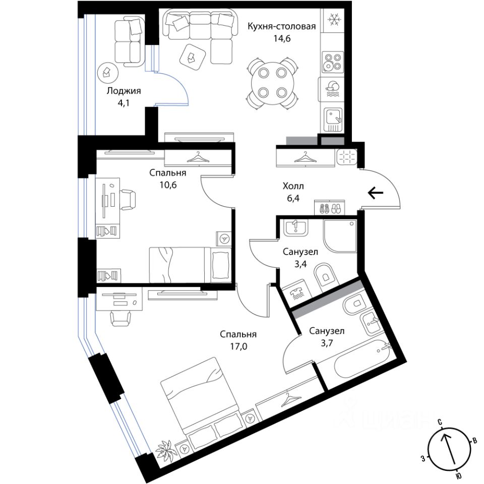 Продаётся 2-комнатная квартира в строящемся доме (Дом 2), срок сдачи: I-кв. 2026, общей площадью 57.8 кв.м., на 3 этаже. Новый жилой комплекс "Экография" от застройщика "ОХТА Групп - Петергоф" расположен по адресу Ленинградская область, Ломоносовский район, Низинское сельское поселение, деревня Ольгино.