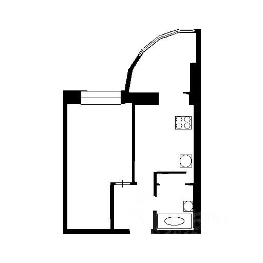 В квартире просторно: кухня, сан. узел, спальня и полукруглый балкон с застеклением в пол. Окно комнаты и балкон выходят на южную сторону. Дом оснащен подземным паркингом.