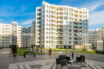 Просторная кухня-гостиная, площадь которой 39.9м², из гостиной есть выход на балкон, с которого открывается воодушевляющий вид на малую Невку и Крестовский остров. Две спальни площадью 30.4м² и 28.4м². Квартира делится на публичную и закрытую части, что сохранит приватность, защищая спальни от посторонних глаз. В каждой из спален есть индивидуальный выход на террасу площадью 11.3м², вид с которой проводит ваш взгляд на тихий, благоустроенный двор. Отделка квартиры — бетон, высота потолков 3.4 метра.