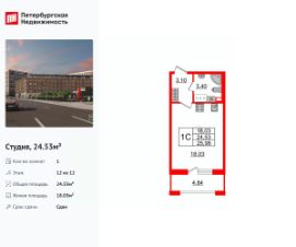 Удобная, классическая, функциональная европланировка, вместительная прихожая 3.1 м². Общая площадь студии - 24.53 м², жилая 18.03 м², высота потолка 3.06 м.
